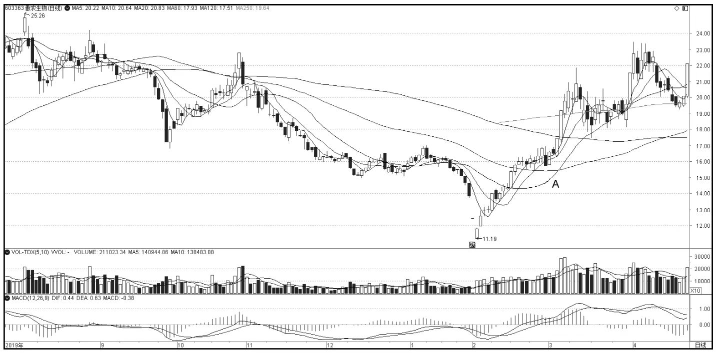 图8 第三类买点的MACD黄白线回抽力度轻(2)