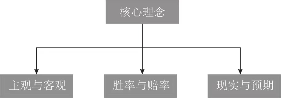 在这里,我们需要着重介绍三组核心的理念:主观与客观、赔率与胜率、现实与预期,如图1所示。这三组词很简单,往往被大家所忽视。但简单不等于容易,想做好以上这几点还是挺难的。