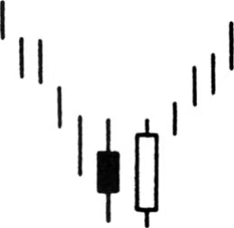 穿头破脚形态说明了蜡烛图怎样帮助提高对市场行为的洞察力。一幅蜡烛图表,和条形图一样,表明了市场的趋势,但与条形图不同的是,蜡烛图也表明了运动背后的力量。如果市场处于下降,就意味着空头占支配地位。如果在下降趋势之后一支长阳线覆盖了一支长阴线(即形成看涨的穿头破脚形态),证实了多头代替了空头占支配地位。