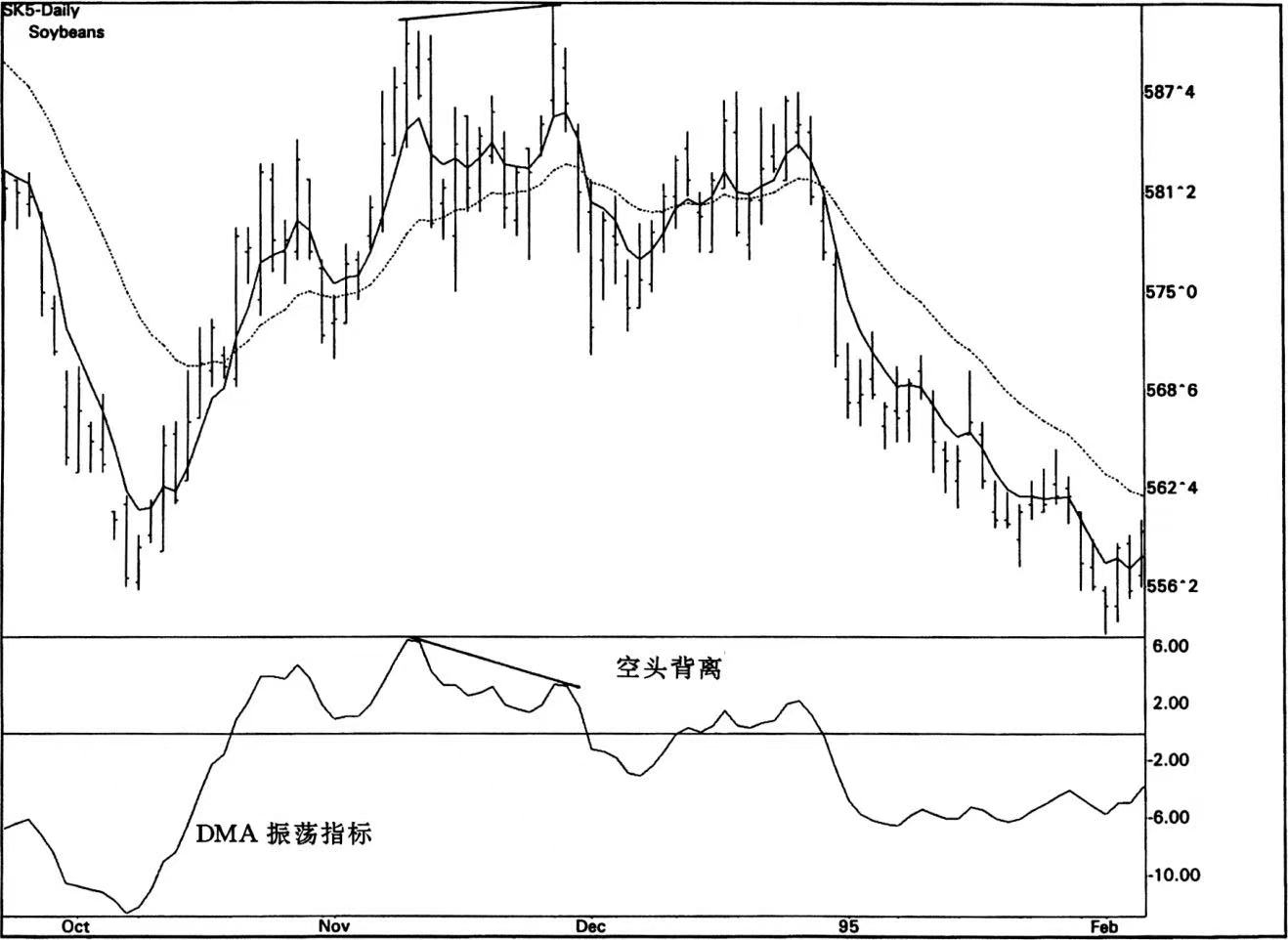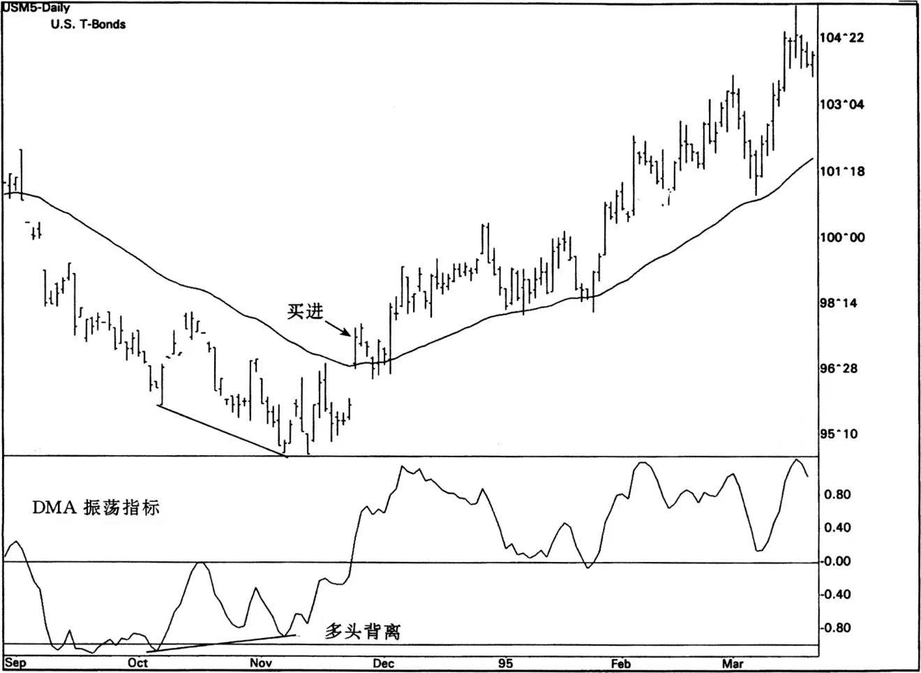 注:1994年11月在50日EMA上方收盘,确认了DMA振荡指标的多头背离信号