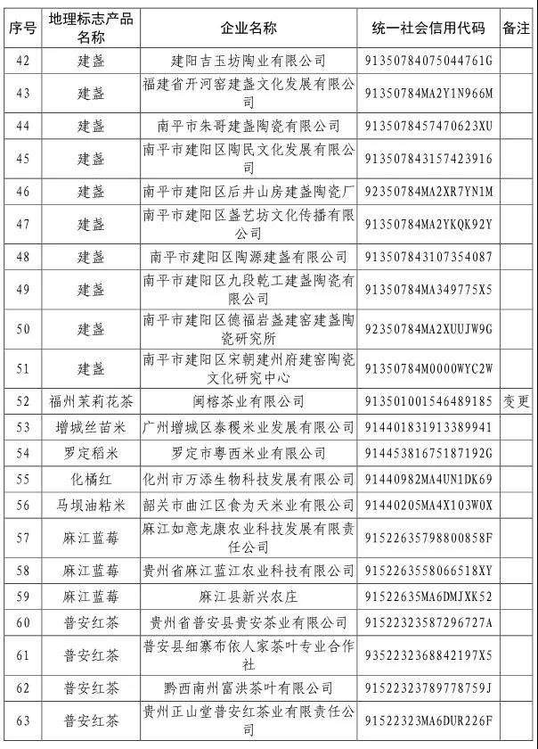 根据国务院《关于国务院机构改革涉及行政法规规定的行政机关职责调整问题的决定》,按照原国家质量监督检验检疫总局《地理标志产品保护规定》,生产涞水麻核桃(野三坡麻核桃)、延寿大米、建莲、建盏、福州茉莉花茶、增城丝苗米、罗定稻米、化橘红、马坝油粘米、麻江蓝莓、普安红茶、修文猕猴桃等12个产品的72家企业(名单见附件),分别向产品所在地相关部门提出了地理标志产品专用标志使用申请,经有关省级知识产权行政部门审核,并经国家知识产权局审查合格,现予以注册登记。自即日起核准上述企业在其生产的地理标志产品上使用地理标志产品专用标志,获得地理标志产品保护。