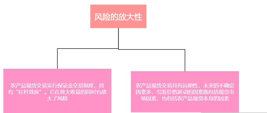 农产品现货市场的风险与现货市场的风险相比,具有放大性的特征,这主要有两方面的原因,如图所示;