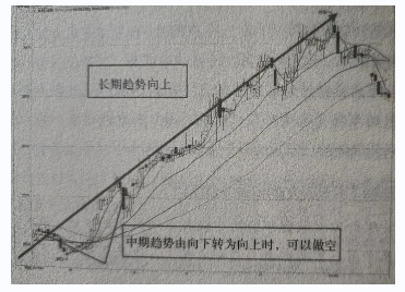 假设长期力量、空间力量都是向上(上涨)的,那么当中期力量由向下转变为向上时,投资者参与市场开始进行中线做多投资就是不错的选择,如图所示;