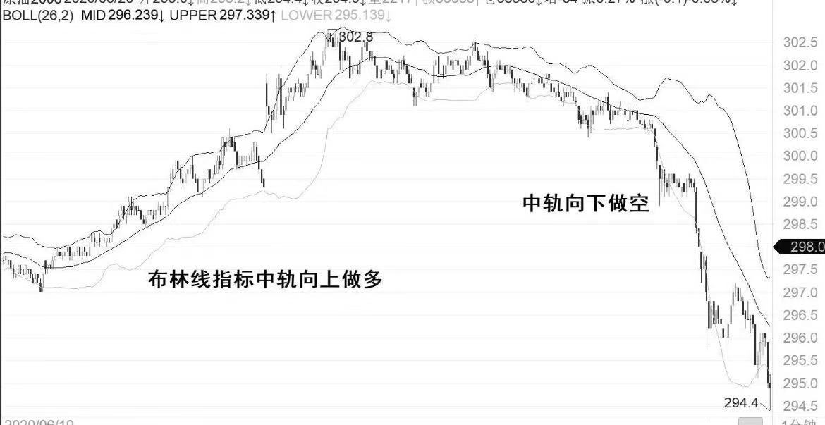 若布林线指标中轨线向下,就只考虑两件事:怎样更好地持有空单,以及怎样寻找中途介入做空的机会。而当布林线指标中轨线形成上升趋势时,同样也只关注两件事:如何将多单一拿到底,以及如何在中途寻找多单入场的机会。