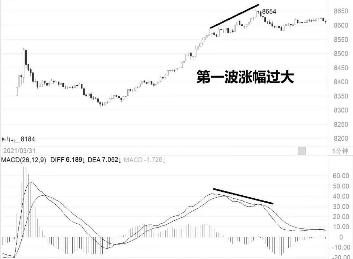 在价格上涨或下跌过程中,如果只形成一波上涨或下跌的走势,往往是不会见到顶底背离的。至少需要价格连续出现两波上涨或下跌的走势,才有可能出现顶底背离现象,并且必须第一波上涨或下跌幅度较大,如果第一波行情的涨跌幅度小,那么在第二波走势出现时也不会形成顶底背离。但若价格连续出现了三波甚至更多的涨跌走势,那么顶底背离现象必然会出现。