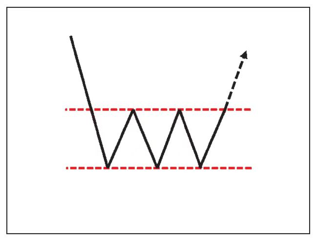 在“底—顶”模式中,底或顶是先前趋势的最低点或最高点,底(最低点)或顶(最高点)附近的横向运动就是反转形态。