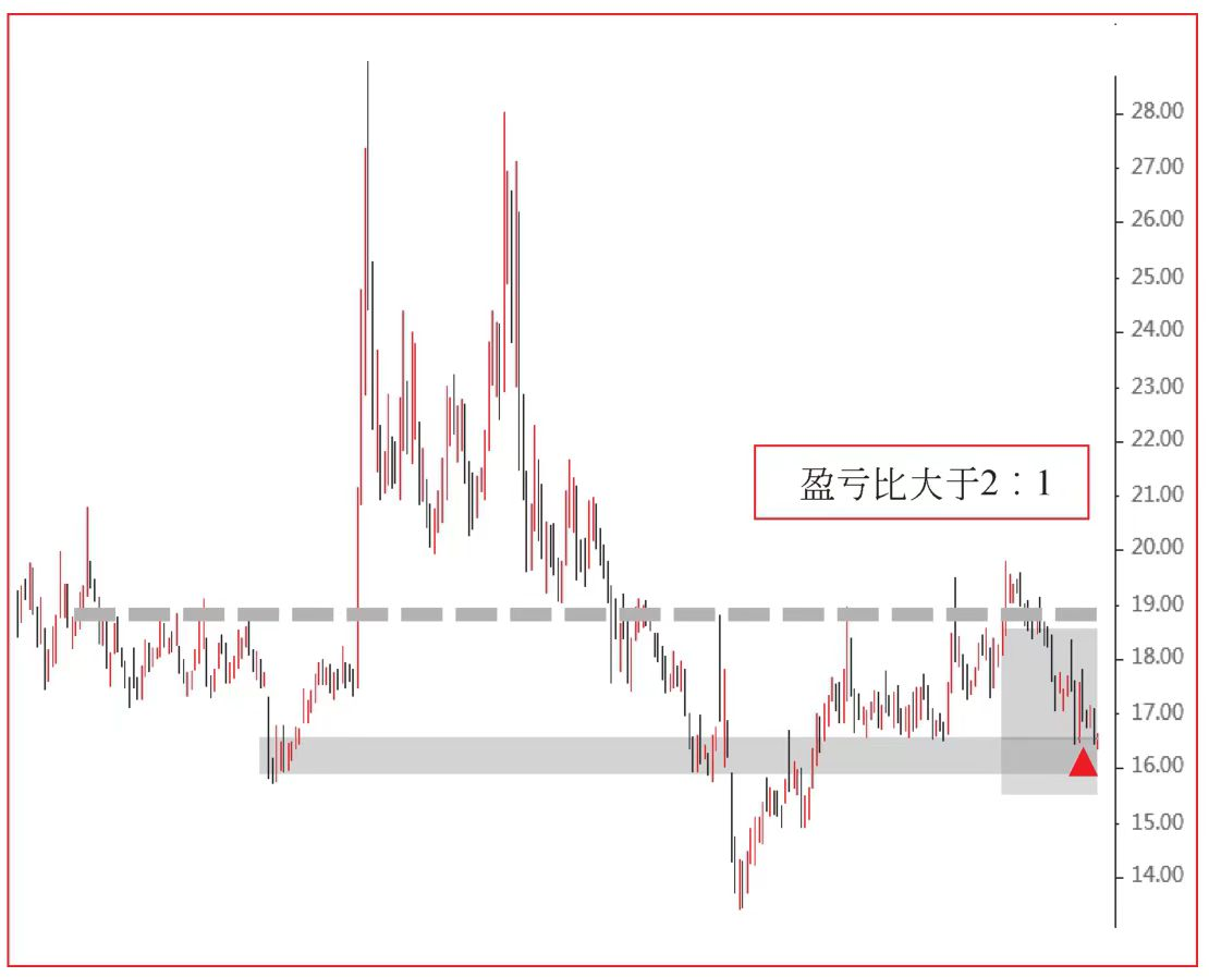 调整之后的支撑线和阻力线如图6所示,交易者采用区间交易策略做交易计划,满足盈亏比大于2,是一个优良的交易机会。