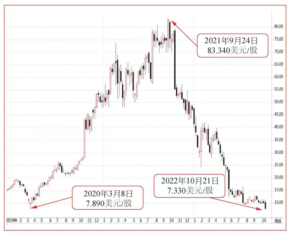 同样地,熊市下跌也会跌过头。如图2所示,美国科技股Snap一年左右的时间下跌了90%,并且有一定的概率永远回不到历史高点。